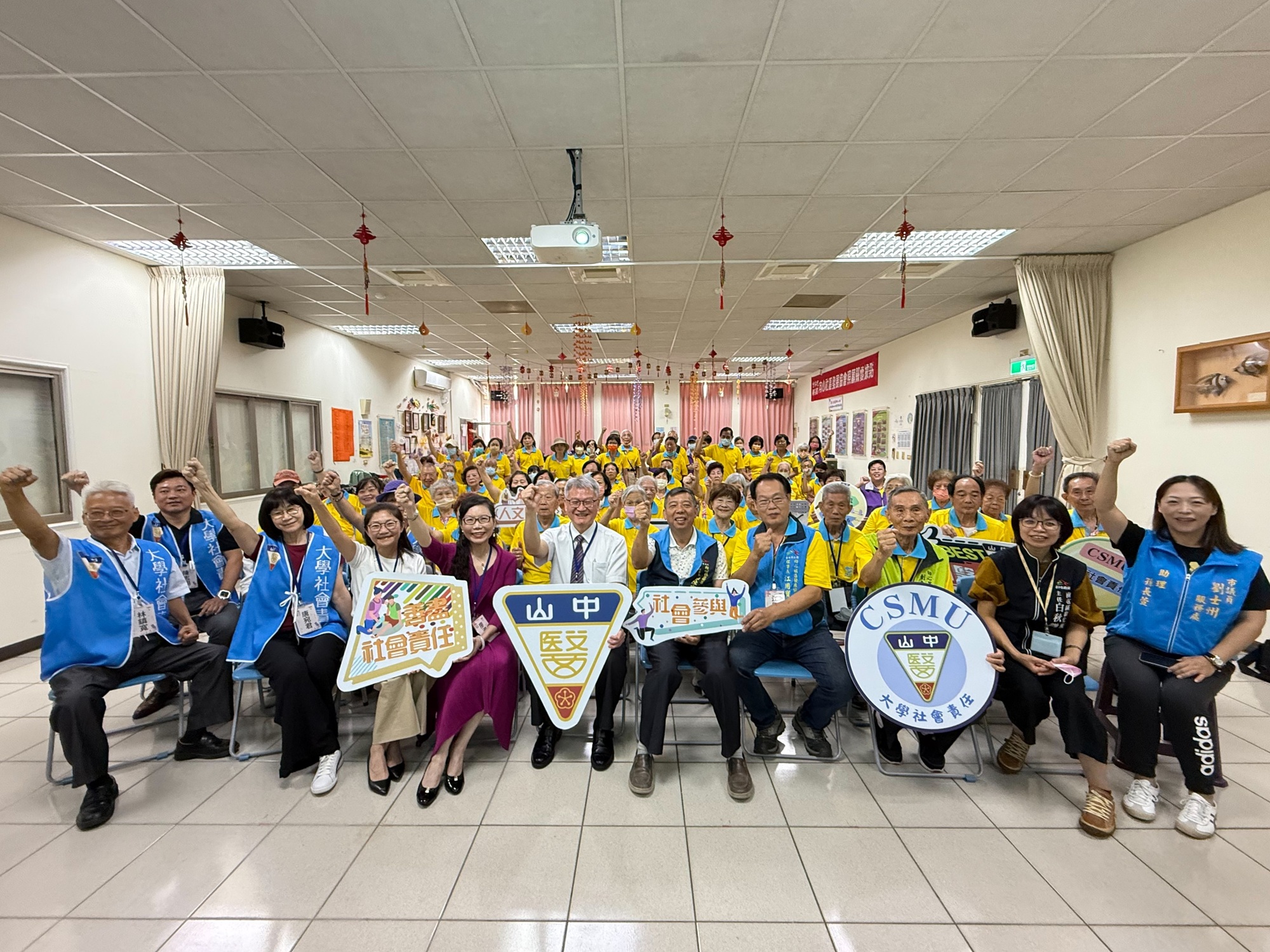 此計畫於向心社區推動已邁入第三年,培訓多位志工投入社區推廣與課程帶領,提升高齡健康識能與參與度。成果發表會中除有志工與長者的實作互動,也邀請中山醫大校長黃建寧、永續發展推動中心主任李怡靜、台中市南屯衛生所主任白秋微與向心社區發展協會理事長江用寶等人出席,見證預防醫學理念的落地實踐。