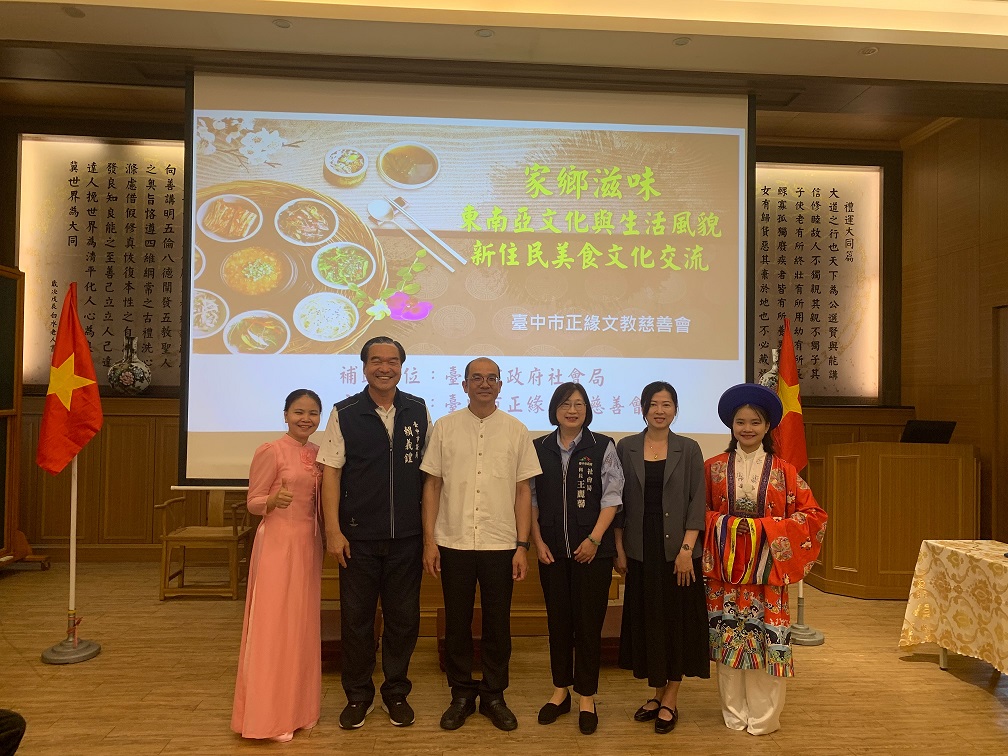 〈台中訊〉由台中市政府及崇仁文教基金會指導,台中市正緣文教慈善會主辦,太平區功能型新住民社區服務據點、修平科技大學、台中市慈德愛心關懷協會及市議員賴義鍠服務處共同協辦的2025東南亞文化與生活風貌美食交流活動,在正緣文教慈善會講堂,由越南籍傑出舞者武氏金瑩,表演頗具特色的越南傳統神童祈福舞開場,正緣文教慈善會理事長謝清和致詞歡迎市府王麗馨科長,賴義鍠議員各界貴賓蒞臨,共同關心推動新住民文化交流活動現場來賓參與品茶,手工蛋捲製作體驗等文化活動隨後重點節目,共有10組20位參加美食文化交流比賽者,現場烹煮料理出一道道越南特色風味美食,由評審選出第一名范慧琳(南瓜園的秘密)笫二名阮世中、范方南(涼拌香蕉花)第三名楊青俊(水果拼盤)以及最佳口味、最佳組合、最佳造型、最佳色調、最佳創意、最佳健康、最佳人氣等獎項,美味佳餚供大家品嚐,正緣文教慈善會現場滿滿家鄉滋味,大家相約下次再見。