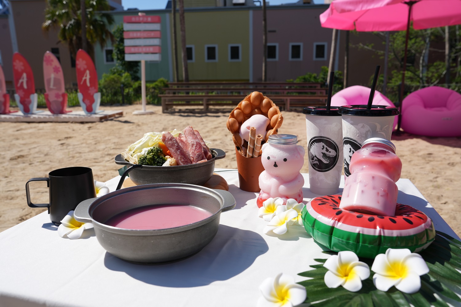 全台最大水樂園-馬拉灣,今年適逢25周年,以粉紅浪潮對抗酷暑,推出「Pink一夏」主題活動,以粉紅陽傘、氣墊沙發、造型泳圈、粉嫩浪板等布置,打造【白日夢沙灘】。園區更引進粉紅火鍋、櫻花醋冰沙、草莓冰淇淋雞蛋仔、西瓜牛奶等一系列粉色餐點,還有超殺的「冰淇淋免費吃」活動,只要加入麗寶樂園渡假區會員,每天都能玩刮刮樂試手氣,有機會抽到冰品免費兌換券。7、8月每周日11:00更將舉辦「彩色霜淇淋擠擠樂」限時挑戰,只要在10秒內擠出25公分高的霜淇淋,就能再獲得一支免費霜淇淋。