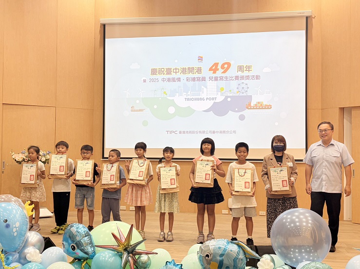 臺灣港務股份有限公司臺中港務分公司於本(114)年10月29日假震大國際會議中心,舉辦「慶祝臺中港開港49周年暨2025中港風情.彩繪寫真/兒童寫生比賽頒獎活動」,特邀請港區航港業界代表、政府機關及獲獎學童暨家長們共同歡慶,一同見證臺中港49年來輝煌成就與永續轉型的嶄新面貌。