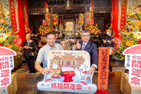 一年一度、被譽為「全球三大宗教活動之一」的大甲鎮瀾宮媽祖遶境進香活動即將開始,台新新光金控(2887)子公司新光人壽連續第六年響應國際盛事,再次與大甲鎮瀾宮合作聯名設計「媽祖開運傘」,於3月27日由新光人壽總經理黃敏義與大甲鎮瀾宮副董事長鄭銘坤共同擔任主祭,在鎮瀾宮媽祖座前舉行過火儀式,希望開運又實用的「媽祖開運傘」,為民眾帶來祝福與好運。遶境期間,也將派出超萌吉祥物Richart花車一路相伴,保佑民眾平安如意,馬到成功!