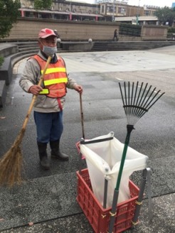 城市行銷處表示,市長林智堅上任以來,致力於公園及廣場的環境感境整潔,讓市民有感,提高榮譽感。城市行銷處負責全市一百二十多座公園及廣場的清潔工作,全體同仁全力投入,代班站前廣場的陳文良現年五十四歲,工作任勞任怨,常會動腦筋如何把事情做好。