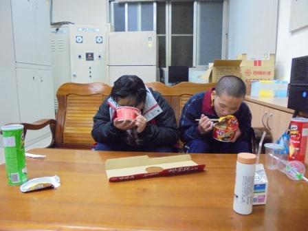 圖說:姊弟吃警方提供的泡麵充饑。(記者陳羿翔翻拍)