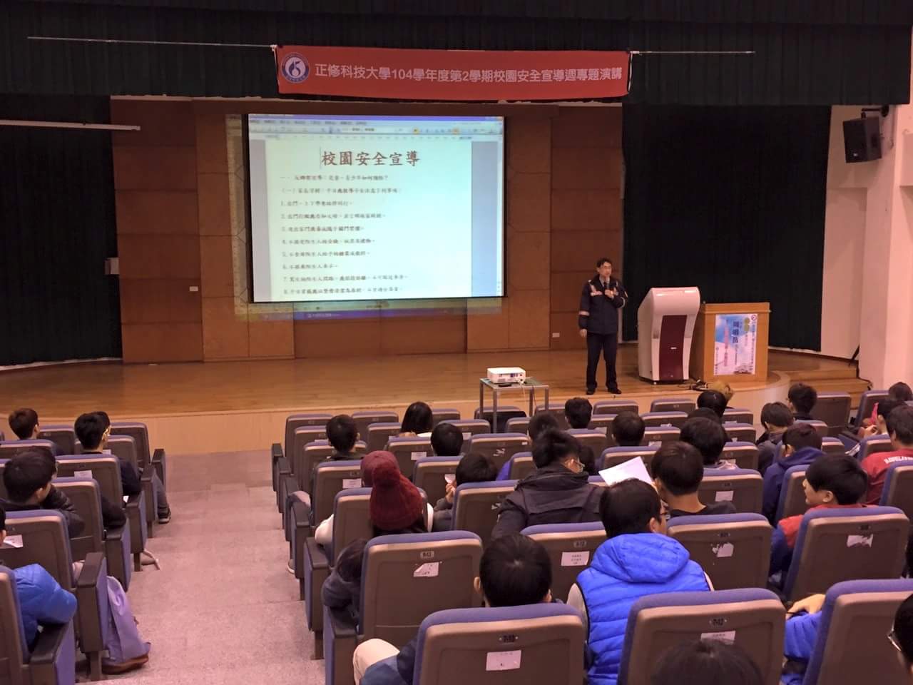 正修科技大學辦理一0四學年度第二學期校園安全宣導,仁武警分局大華派出所所長周明岳受邀前往演講。