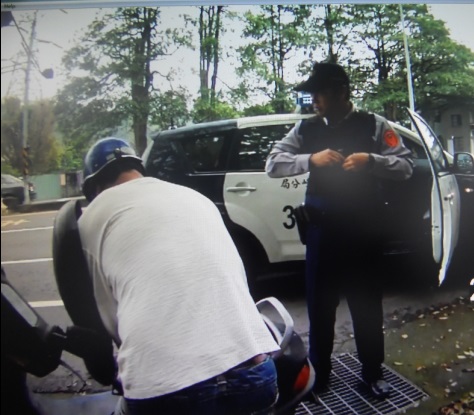 圖說:警方攔截逆向騎車的男子。(記者陳羿翔翻拍)