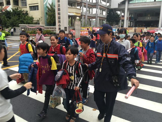 覺民派出所於放學時間均會編排一名制服員警,著交通指揮服裝、攜帶指揮裝備,至陽明國小校門口協助管制指揮,讓車輛及行人按燈號行進,順利通行,服勤的是新近警員黃家華,雖是剛畢業分發至派出所兩個月,卻是十分認真及細心,先以手勢指揮兩方車輛停止後,再帶領小朋友通過路口,確保學生路隊通行完畢,道路淨空後,再指揮車輛通行,讓小朋友們非常安心,紛紛喊「謝謝警察姊姊」,警員也回以微笑致意。