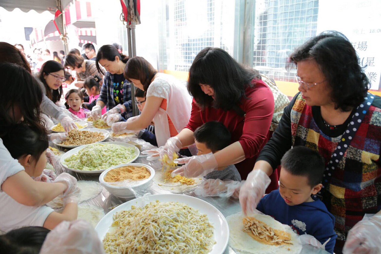 新竹市中正市場百人包潤餅活動於二日盛大登場,超過一百對親子一起動手包潤餅,現場歡笑聲不斷,孩子們手忙腳亂包潤餅,感受傳統習俗的樂趣與美好。