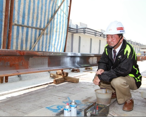 林副市長表示,捷運綠線去年四月發生工安意外後,市府重新檢視檢討市府在工安、交通維持、工程進度督導等,並積極研擬改善對策,在嚴格要求工程安全為第一的最高原則下,在市府交通局與台北捷運局密切合作下,經歷一年後,已完成全線鋼梁吊裝,陸續進行長焊鋼軌鋪設工程。