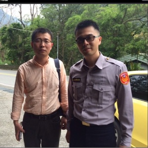 圖說:谷關派出所所長劉峪銓與秦姓總監合影留念。