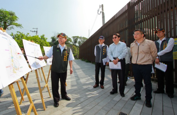 立法院副院長蔡其昌邀請交通部觀光局長謝謂君、台中市政府副秘書長李賢義及大甲區長劉來旺、大安區長顏金源等人,一起到大甲日南驛站周邊休憩空間改善工程及大安區濱海廊道觀光環境營造計畫地點會勘。