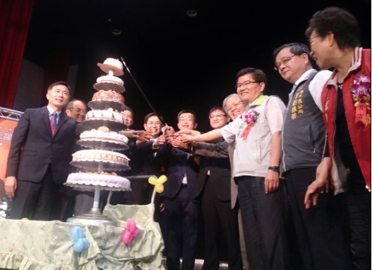 圖說:與會各界人士一起參與切蛋糕。(記者楊川欽攝)