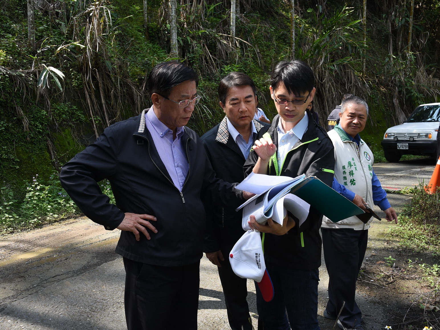 縣長林明溱在縣府工務處人員的陪同,分別前往中寮鄉和興村及草屯鎮雙冬里會勘農路損壞情形,林縣長表示農路是基層民眾生活所需,民眾運送農產及對外聯絡道路都需要安全的道路,縣府會盡量滿足大家的需求,道路有問題就要趕緊修復補強,避免因小失大,讓損害更加嚴重。