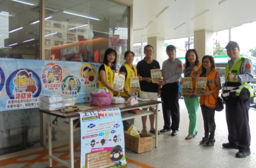 大里區大明路統一超商位於餐飲及娛樂區之中樞,平日往來人潮即絡繹不絕,霧峰警分局國光派出所並協同所內志工服務隊與國際獅子會到場設置「反詐欺宣導服務站」,於現場指導民眾防詐、防搶、防竊及婦幼安全等預防犯罪宣導暨提供法律諮詢服務。