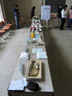 圖說:中醫學系回顧展展示中醫醫療器材。(記者楊川欽攝)