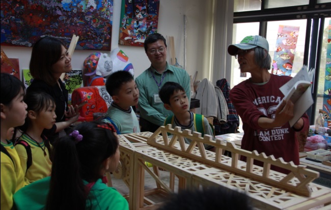 首場報名學校為大甲區德化國小及清水區建國國小,學生們在導覽志工的解說下,了解園區建築特色及展覽內容,一個個驚訝的表示:「哇~原來在藝術廣場中心拍拍手會有回音」、「展覽室A的天井設計是為了環保節電」,更在穿梭於一間間的藝術工作室間,吸取老師們給予的藝術養分,了解藝術工作者的創作特色,並從疑惑解答中豐沛自己的藝術涵養,最後分組進行手作課程,老師們無不驚呼孩子直率的創意,能將同樣的材料元素經過自己的演譯,呈現出不同效果與面貌,並欽佩的表示,孩子天生就是藝術家。