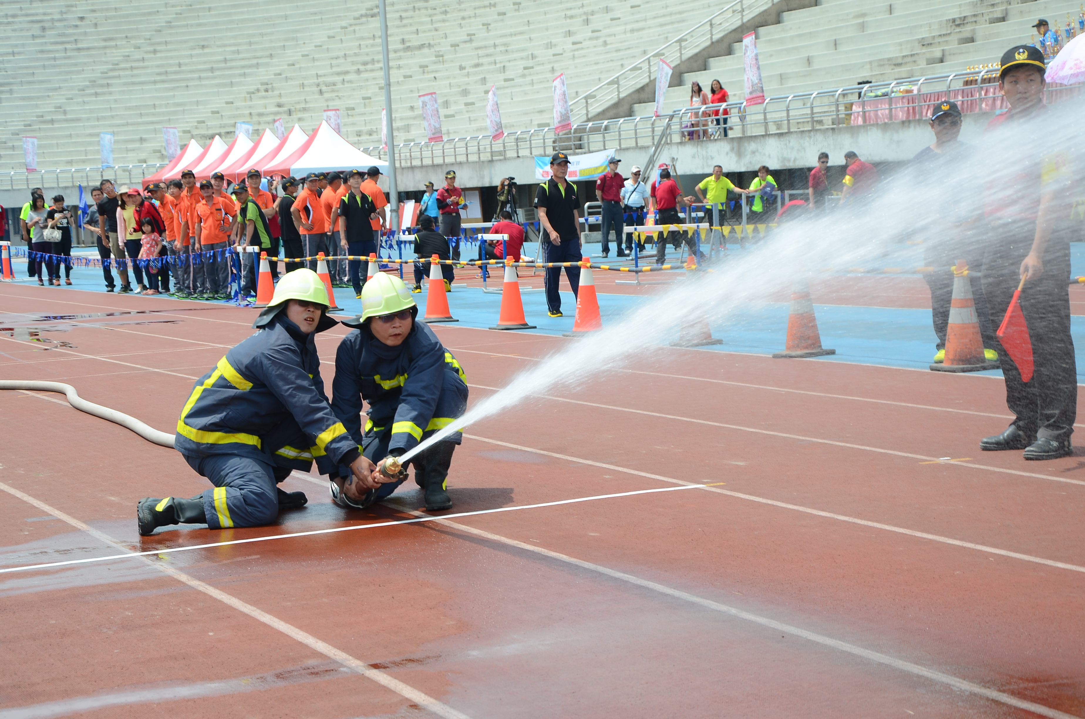 此次義消競技大賽項目包括小幫浦射水、著裝、負重救生、基本繩結等,參賽人員無不全力以赴,競爭相當激烈。另鳳凰志工及婦女防火宣導隊則分別參加勇闖金字塔、心驚膽顫、頸頸相扣及圓圓長長,以及飛盤接力高手、減肥啦啦隊及腳力十足等趣味競賽,各隊都全力以赴,競爭相當激烈,現場還有園遊會提供各式美食小吃,場棉相當熱鬧。