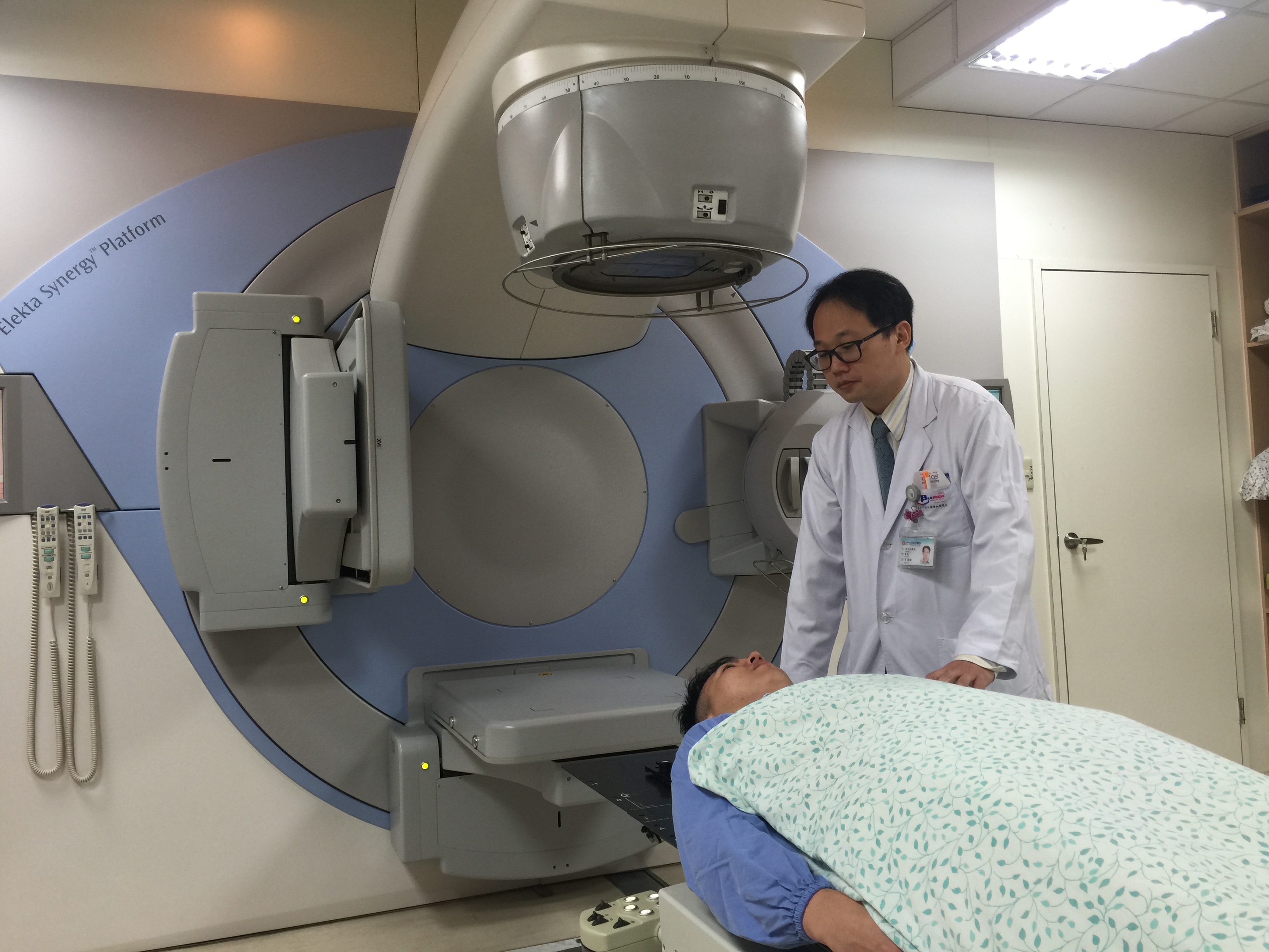 圖說:光田醫院使用鋸齒狀相接強度調控放射治療技術和影像導引系統為病患治療。(記者楊川欽翻拍)