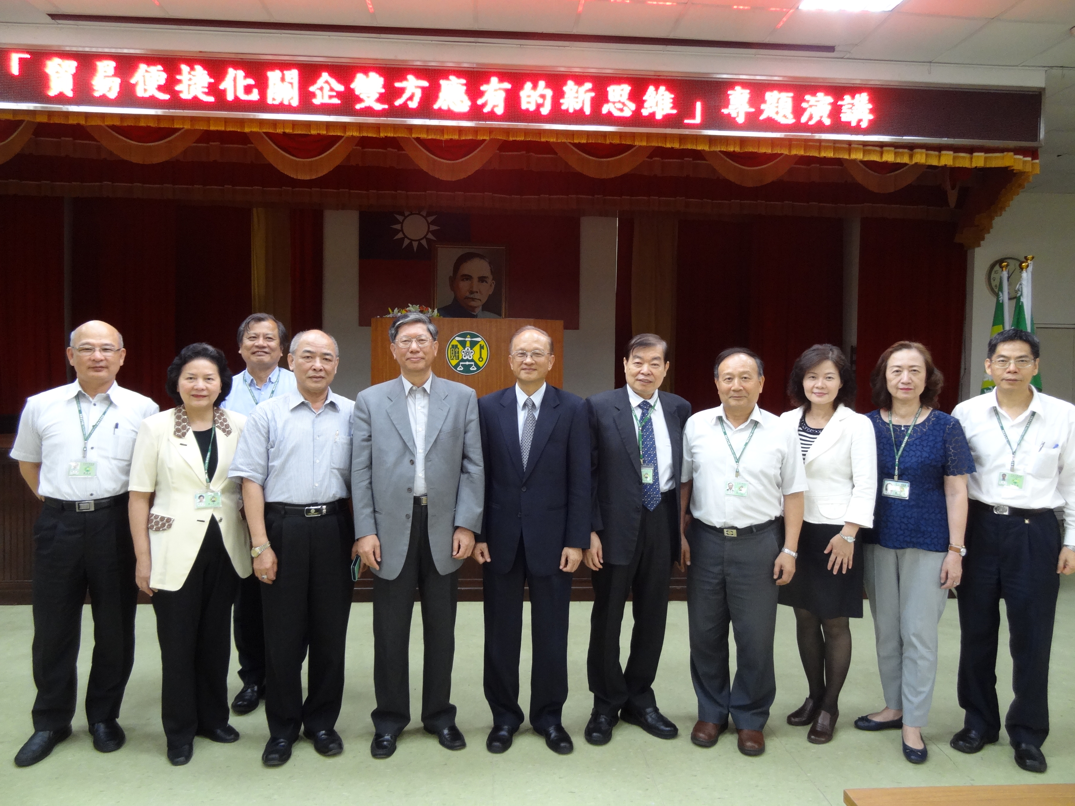 財政部關務署台中關於二十九日上午,邀請前關務署署長王亮博士,道該關本部六樓禮堂舉辦「貿易便捷化關企雙方應有的新思維」專題演講,不僅該關關員踴躍參與,台中市船務代理商業同業公會林理事長順源及台中市工商發展投資策進會黃總幹事望修等多位公協會代表亦到場共襄盛舉,場面熱烈,講座圓滿成功。