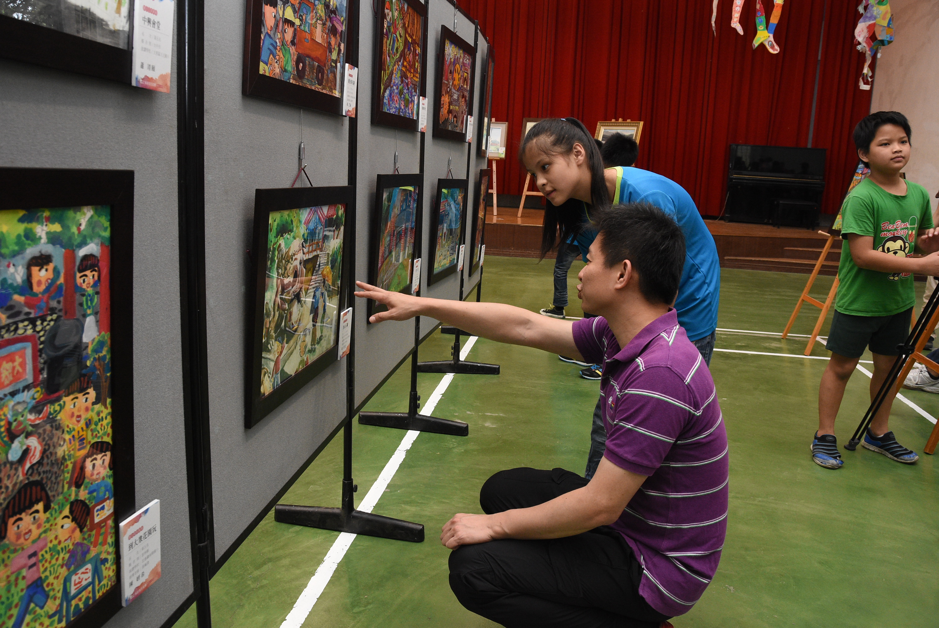 廖議員及張主席也同聲感謝生活美學館的用心,提供此展覽機會,讓中寮學子能就近親近畫作,對話學習,藉由藝術欣賞和交流,提升社區美學涵養,讓中寮鄉更進步;稍後,林校長引導貴賓們到會場參觀,賴同學也為貴賓們解說其獲獎作品,過程溫馨。