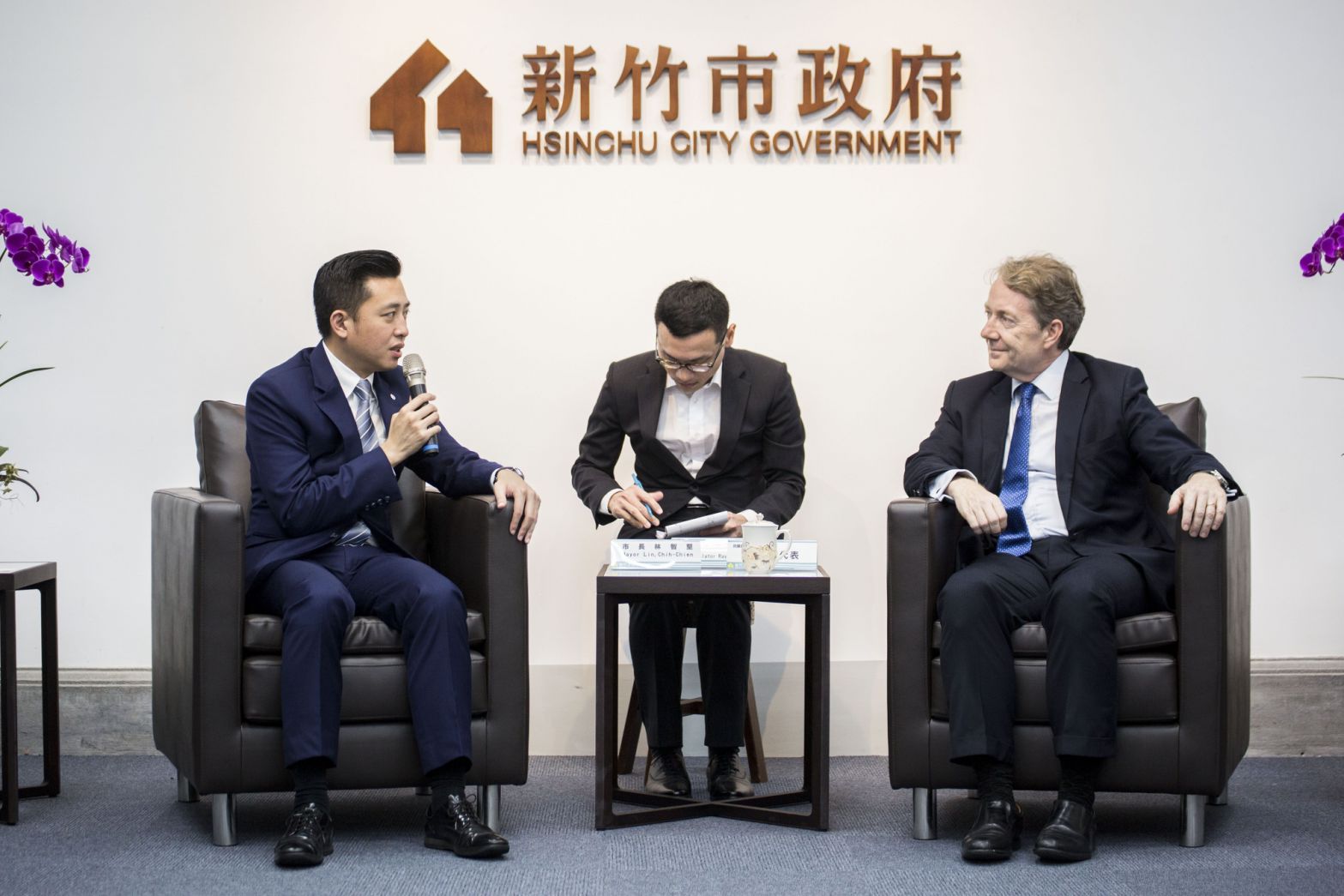 荷蘭貿易暨投資辦事處代表紀維德拜會新竹市長林智堅,雙方討論將於十月份在新竹市舉辦之荷蘭創新巡迴展,並就綠色智慧城市、荷蘭在台高科技產業的在地人才招募等議題分享經驗與交流,林智堅市長亦請紀代表協助引薦,讓新竹火車站與阿姆斯特丹中央火車站締結姐妹站,增進兩市友誼。