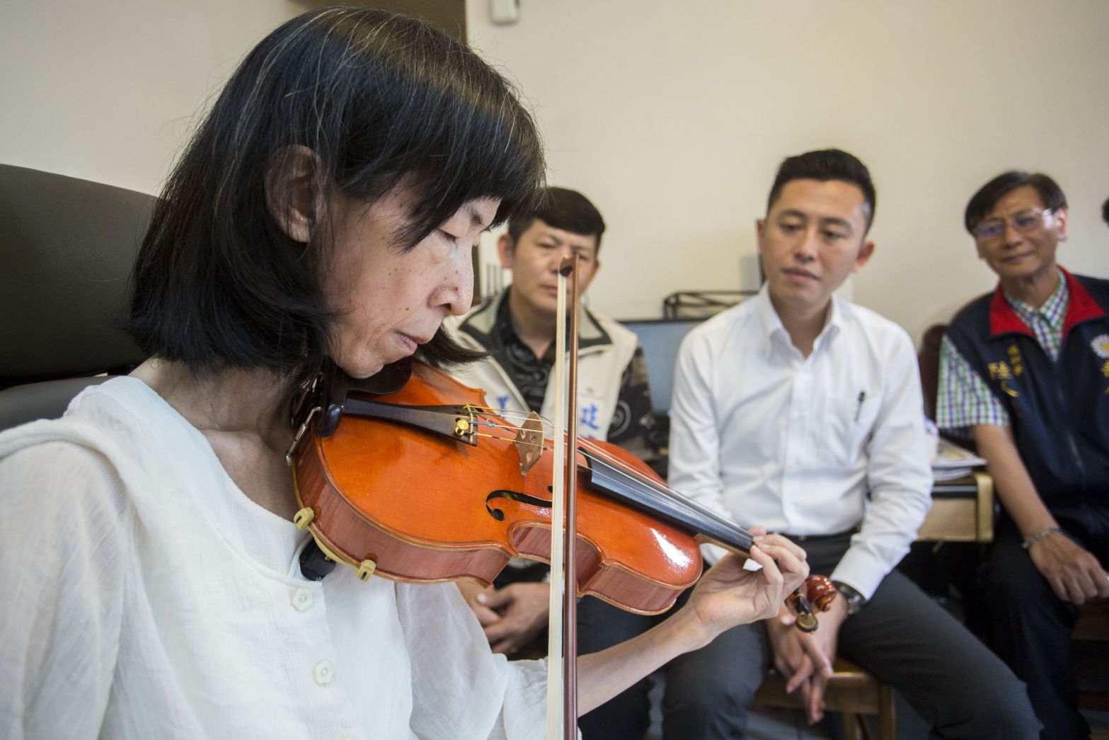 楊芳妃表示,五年前她不慎跌倒,導致左髖骨骨折,只能臥病在床,父親因為過度悲傷,兩個月後便撒手人寰,人生最低潮的時候,她向長照中心求助,「人生彷彿再次看到希望」,透過居家服務員的照料,以及復健師的復健,逐漸恢復自理能力,她也開始學習小提琴,藉由琴聲抒發對父親的思念,也透過拉小提琴,訓練肢體的靈活度;目前已兩次受邀至新竹榮民服務處表演,她說,人生還很長,「學習小提琴,讓我重新找到心靈的寄託」。