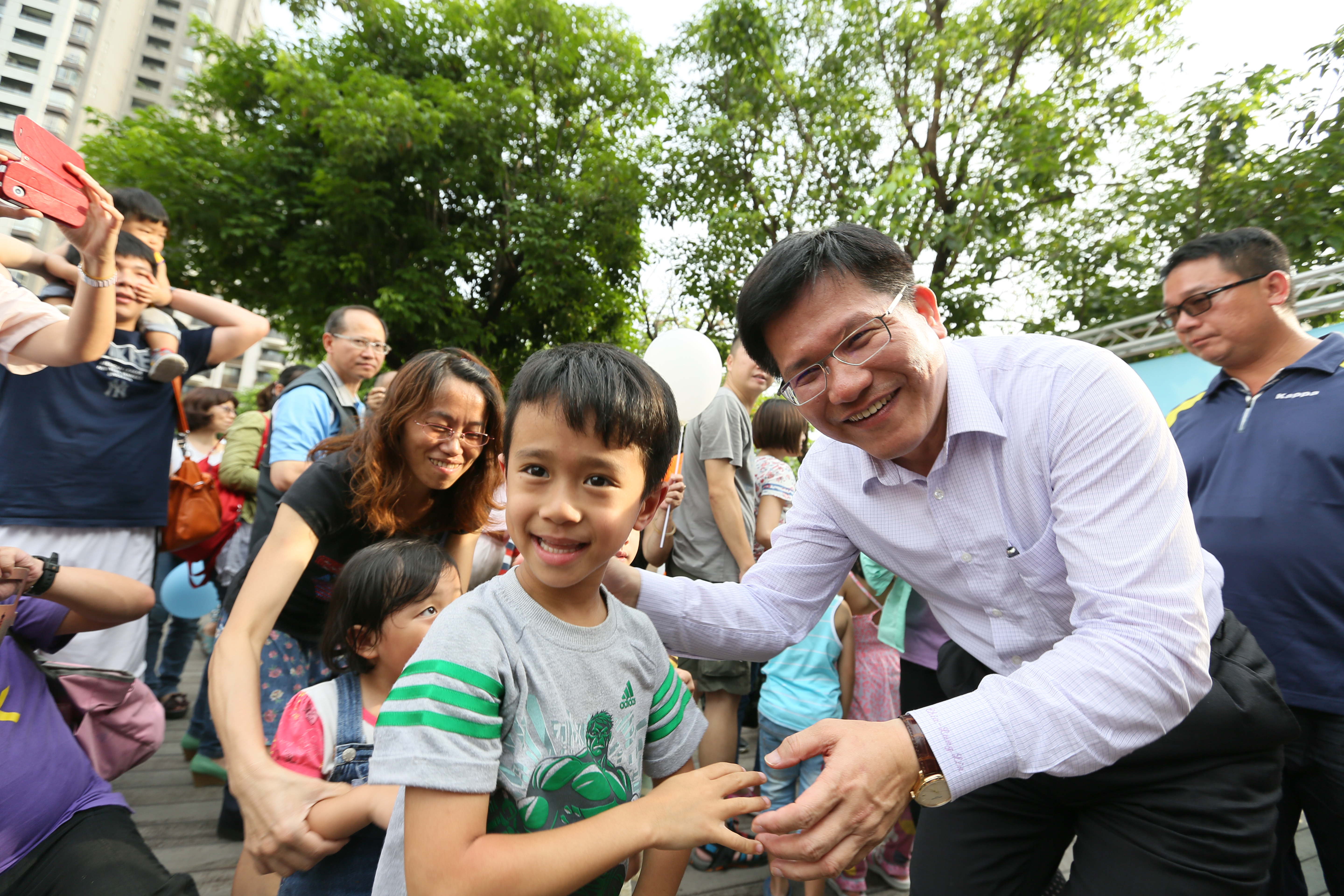 圖說:林佳龍市長親切的與小朋友互動。(記者楊川欽攝)