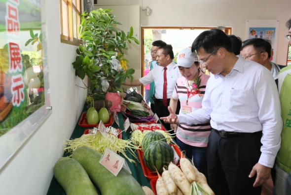 圖說:市長林佳龍參觀清水農產品展示。(記者楊川欽攝)