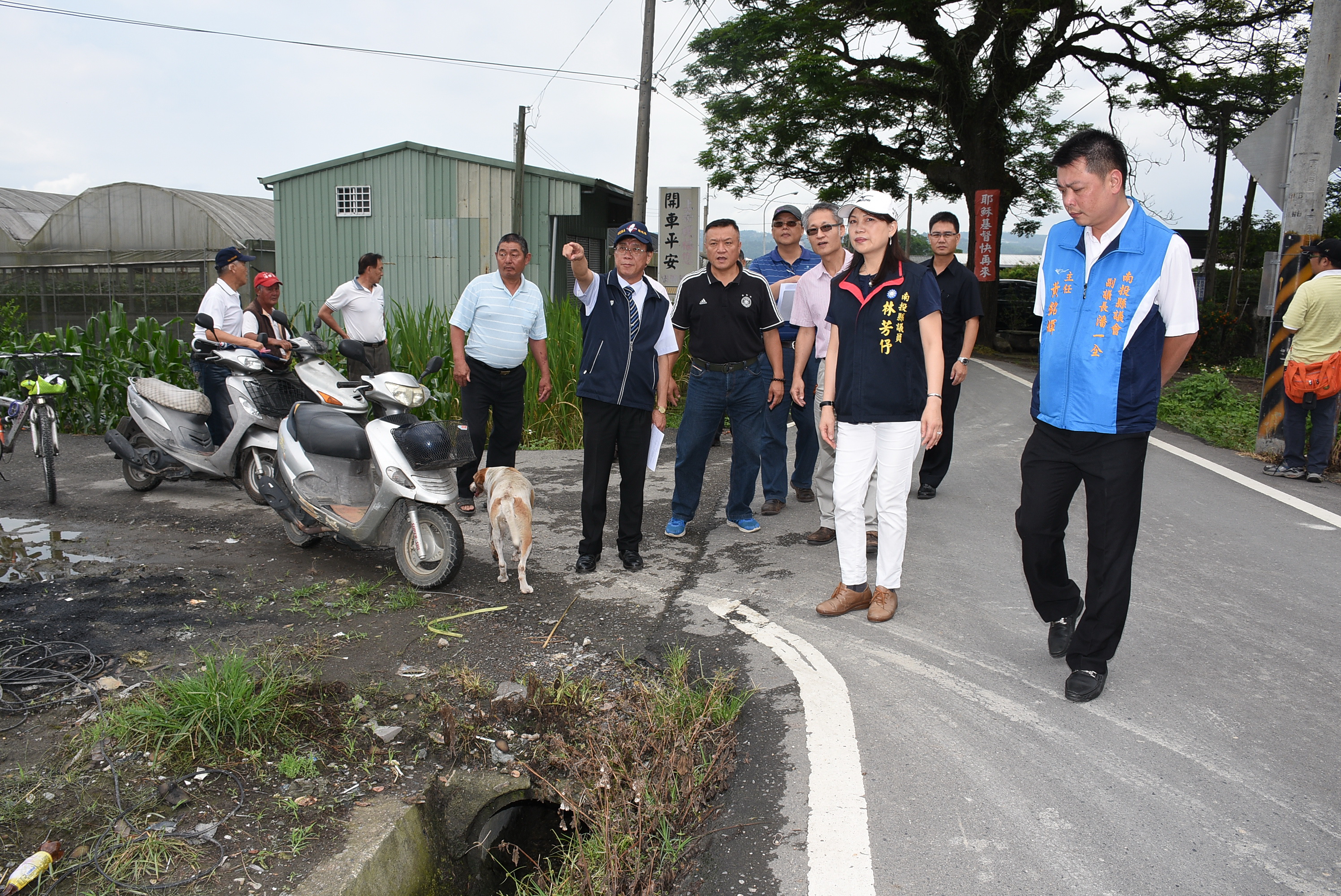 籃城路連接中正路區段,因地勢較中正路低,且排水溝施設未能連接下游排水溝,導致雨水逕行流入民宅或農田,造成淹水情形,亟需改善,林縣長會勘後,估計需新建約一百三十八公尺的排水溝接通下游排水溝,以利排水,並將原有排入農田的排水溝導流入新建排水溝,以完善村里排水系統,另牛眠里一巷、二巷及三巷排水溝,開設於巷道中間,因近年來路面鋪設AC路面時,未刨除原有AC封層,導致溝蓋低於路面,經常造成民眾摔傷意外,影響民眾安全至鉅,有改善之必要,讓居民有安全道路可使用。林縣長指示工務處籌措經費補助鎮公所,由鎮公所取得土地使用同意書後,儘快設計發包改善。