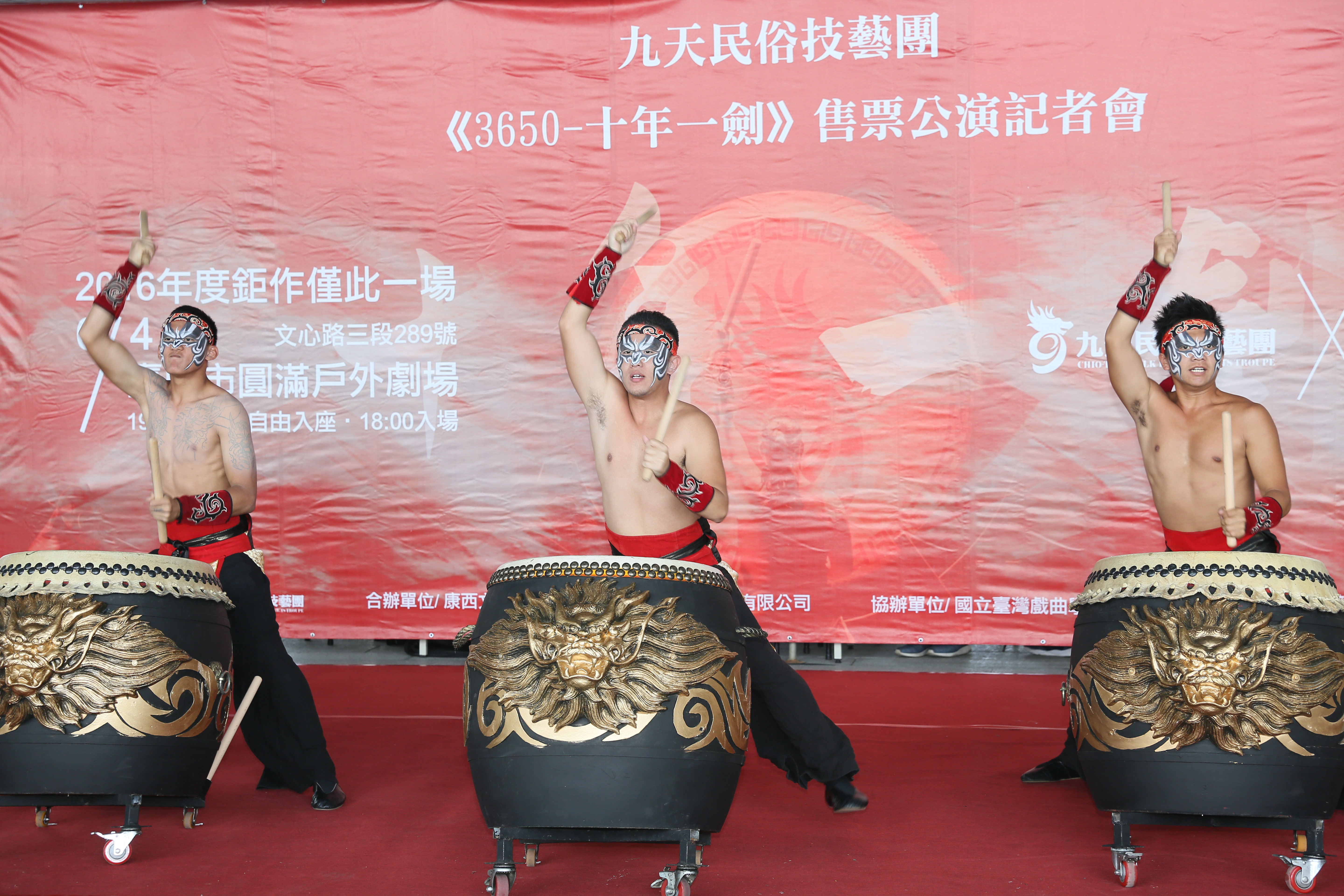 「九天民俗技藝團」十年前首次從廟口街頭轉型踏入演藝廳舞台,歷經磨練,從陣頭團體登上國際舞台,六月四日將於台中圓滿劇場推出僅此一場的經典大秀「十年一劍」,展現十年苦心歷程。市長林佳龍邀請大家共襄盛舉,並盛讚九天作為「台中品牌」,讓全世界看見台灣傳統藝術文化。