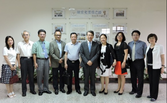 大陸湖南醫藥學院唐聖松校長偕國際交流合作處蘇筱伶處長、教務處田小英副處長一行三人,到中國醫藥大學參訪學術交流,同時探視該校選送來該校藥學院隨班附讀研習的藥理學老師石麗萍、化學老師吳瑋琳兩人,受到李文華校長、醫藥學院林文川院長、陳悅生教務長、推廣教育中心廖世傑主任、中醫學系黃升騰教授、公共事務處林靜茹副處長等行政主管的熱忱接待並座談交流,雙方對於課程的設計與教務的管理等議題交換經驗,洽談氣氛相當融洽。