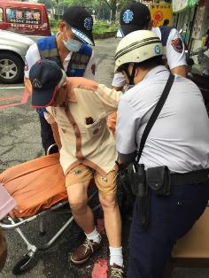 一名趙姓阿嬤(二十七年次)騎乘機車行經左營區中華一路,疑因未注意車前狀況,擦撞欲過馬路之袁姓阿公(二十三年次),致阿公受傷倒地不起,左營分局啟文派出所警員洪政界及警員胡斐鈞執行巡邏勤務,獲報馳赴現場處理,並立即協助送醫。
