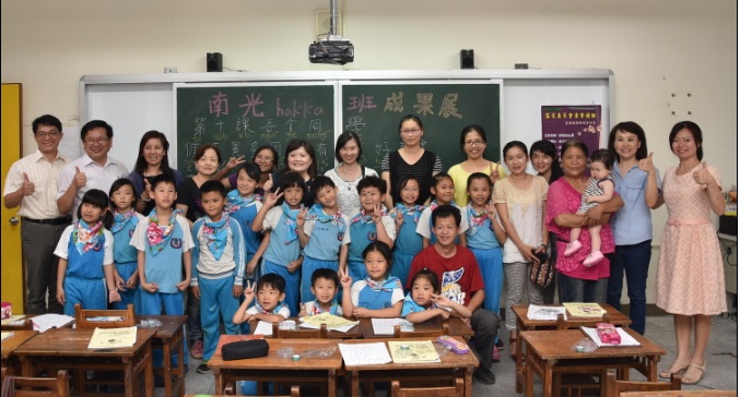 縣府在埔里鎮南光國小辦理「推動客語薪傳師傳習計畫」南光Hakka班學習成果展,由薪傳師林彥妗帶領十五位一、二年級學童演唱客語歌謠,展現學習成果,讓家長瞭解縣府推動客語的用心,鼓勵學童學習客語,使客語傳承真正札根。