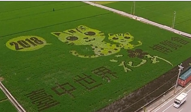 為宣傳二0一八台中世界花卉博覽會,台中市政府農業局及龍井區農會在龍井區臨港東路農田設置彩繪稻田,讓花博吉祥物「石虎」圖案呈現在稻田上,由於現場設有觀景臺讓人登高欣賞,吸引不少民眾前往拍照,成為當地新觀光亮點。