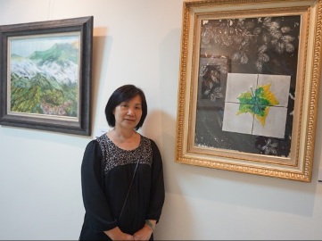 圖說:馬敏華與她展出的作品。(記者楊川欽攝)