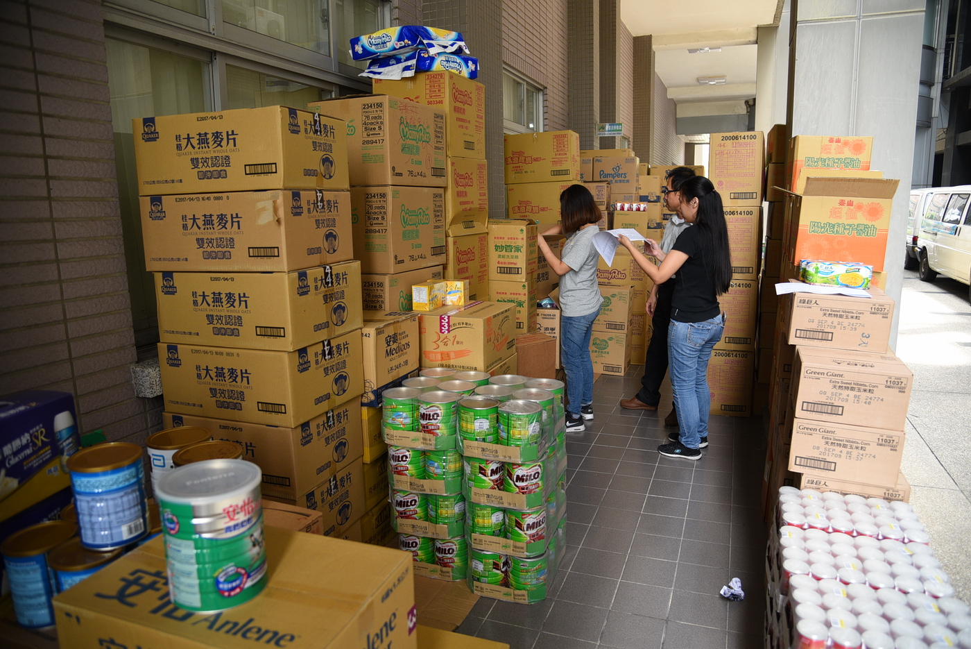 縣府於一0三年起開辦食(實)物銀行援助以來,廣受各界迴響,台灣期貨交易所等十三個金融單位自去年起開始「金融有愛~食(實)物銀行」捐助行動,十八日委託量販業者配送今年度第二季物資至縣府,多達三輛大卡車的物資堆滿社會及勞動處走廊,由社工人員清點並分配至各社福中心,再由受助家庭前往領取。