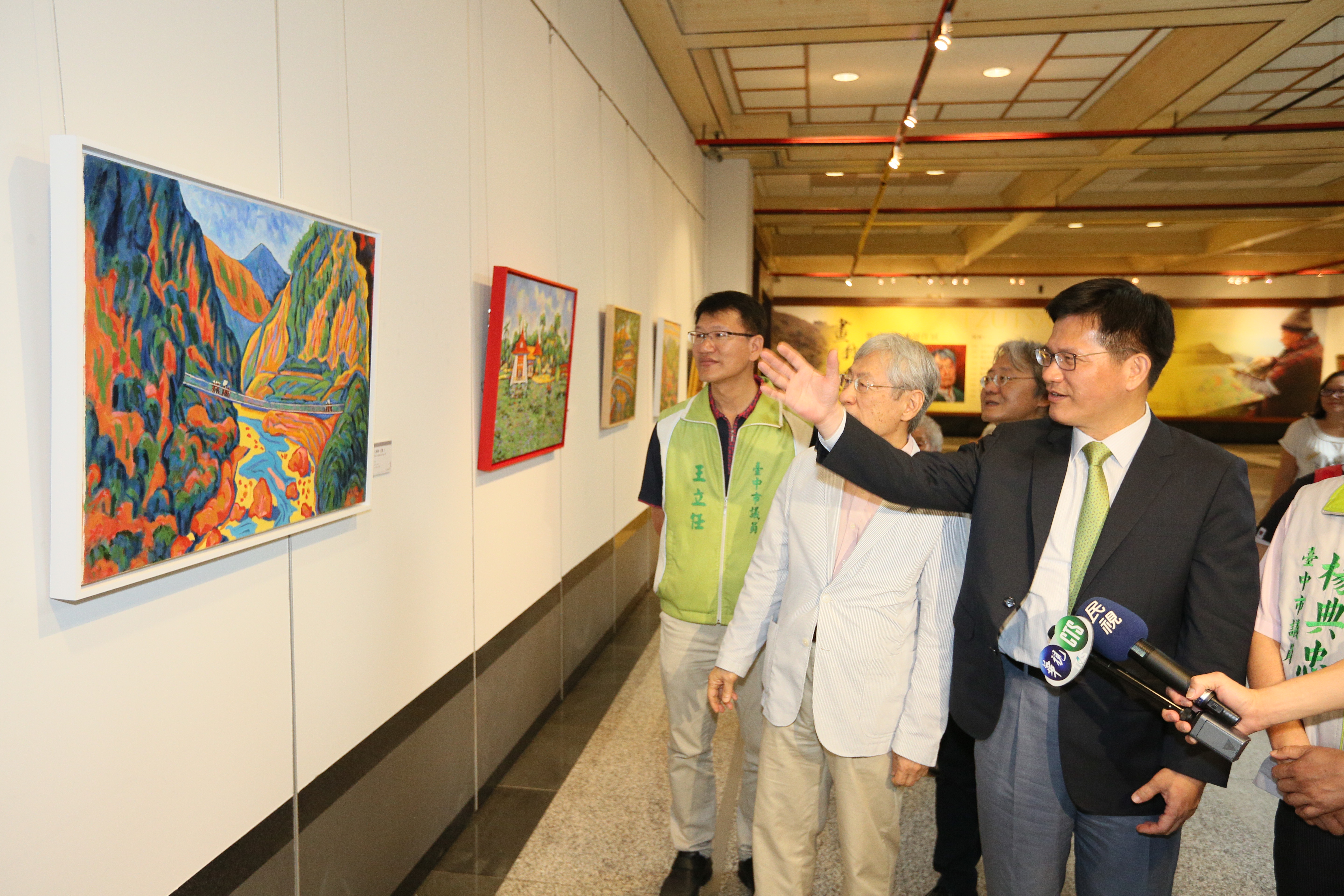 林市長指出,鄭自才的作品發自土地,能從中感受到台灣的生命力與活力,透過鮮豔的色彩與粗曠的構圖,讓人感到土地的脈動與溫度,一定會觸動許多人對台灣的感情,目前,市府正在水湳經貿園區興建市立美術館,他希望預約制鄭自才到新館展出,也盼鄭自才能常常到台中創作,畫出他最心愛的台中。