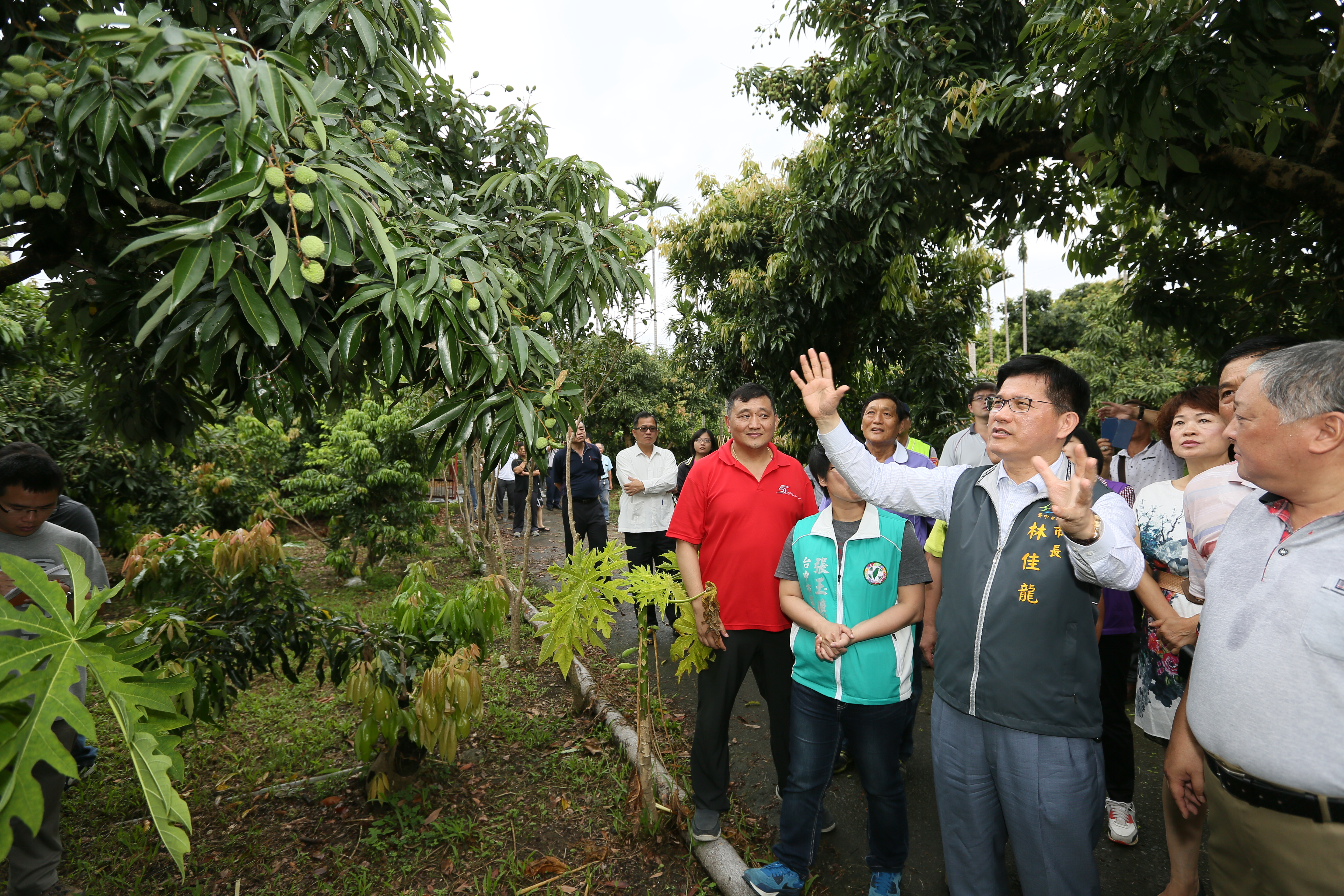 市長林佳龍於二十二日下午與農業局長王俊雄、市議員李麗華、張玉嬿、太平區長陳小菲、太平區農會總幹事余文欽等人陪同,前往太平區的荔枝園視察。