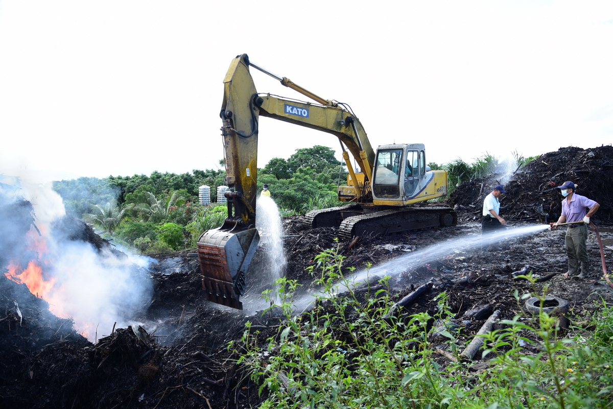 悶燒情況進入第五天,清潔隊員二十四小時輪班持續灑水,環保局調派的挖土機配合挖掘枯枝助沼氣揮散,灰燼陸續運到二萬公噸容量的第四期掩埋場,未燃燒的樹木則重達數十噸,分批送往集集鎮巨大廢樹木及漂流木回收再利用場進行破碎。