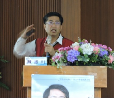 圖說:陳振川受邀中國醫大演講。。(記者楊川欽攝)
