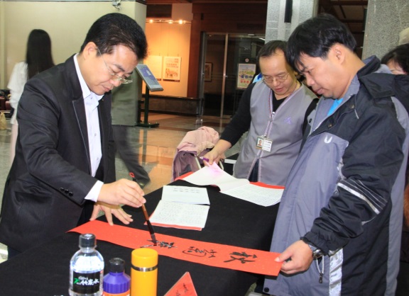 這項活動邀請台中市書法協會林榮森、朱幼華、劉振興、蔡篤釗、蔡永洲、詹益承、筆永源、謝金德、童培炎、王俐淇等十位書法名家,於十七日上午十時在港區藝術中心展覽大廳現場揮毫,書寫二百幅春聯贈送民眾,現場還有弦耕琴社古琴演出,讓民眾提早感受濃濃年味,與民眾在丙申年祈求幸福平安一整年。