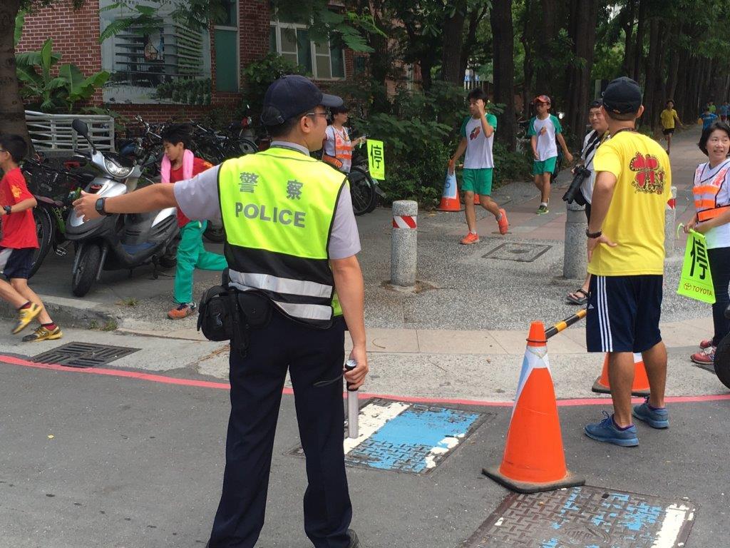 由於天氣高達三十多度高溫,讓在路口維護學童安全的員警,個個汗流夾背且制服濕透,但對於守護孩童的熱誠更勝於辛勞,且堅守崗位直到路跑活動結束。員警們在確保每位畢業學童平安地跑回終點後,才放心返回駐地。