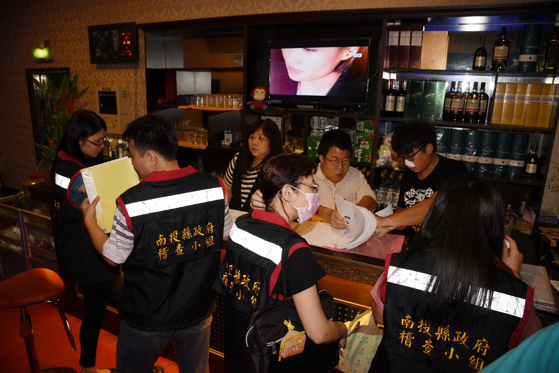 由警察、消防、建設、衛生、財政及社會等單位組成的縣府聯合稽查小組,每個月都會針對縣內八大行業進行二至四次的聯合稽查工作,二日晚上是到名間鄉內五家養生按摩館及卡拉OK店稽查。
