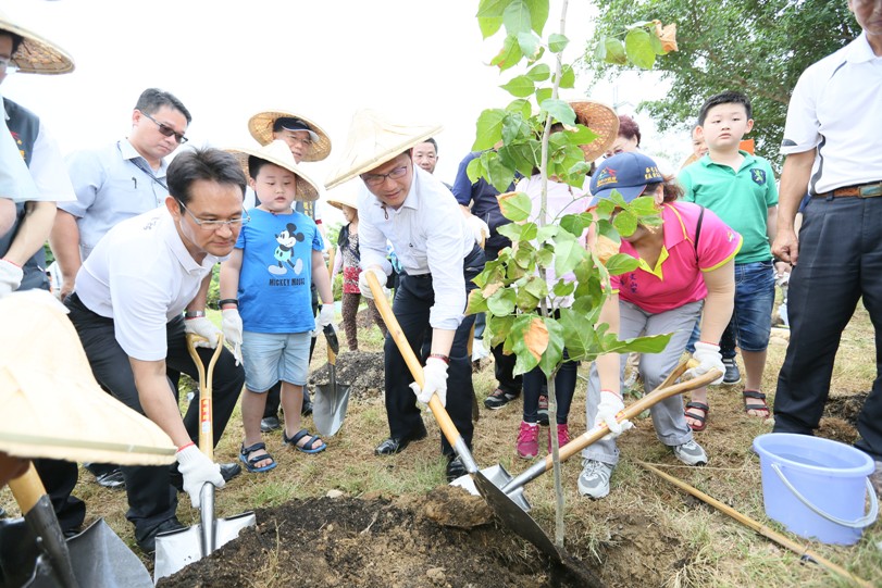 林市長與現場民眾共同種下本土原生樹種,他表示,五日是聯合國「世界環境日」,活動號召親子共同種樹並推動環境教育,是響應環境日的最好方式,而他之前所提「八年百萬棵植樹計畫」,一年多的時間下來已達到預定的二十五萬棵目標,期盼市民一同加入種樹行列,讓種樹成為環境教育外、更融入成為生活中的一部分。