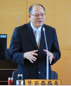 圖說:警察局長蔡義猛在議會答詢。(記者楊川欽攝)